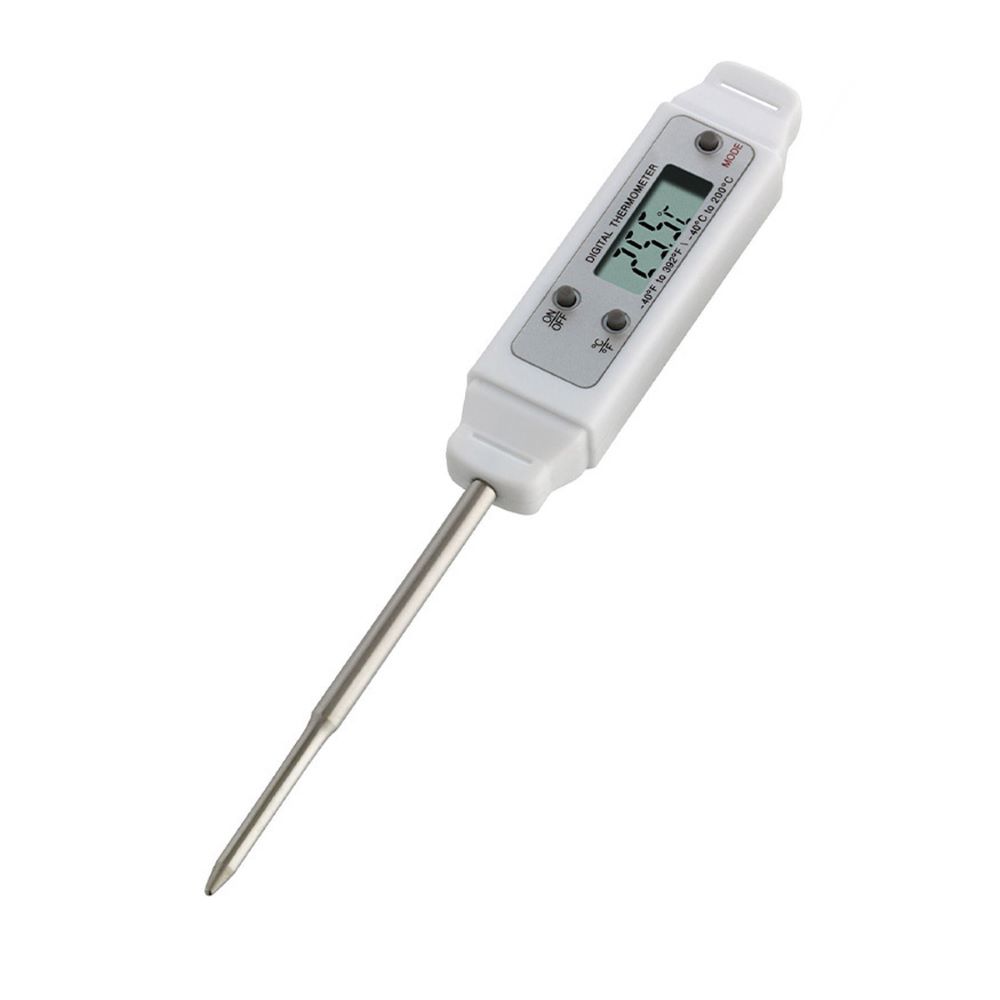So 75 mm dlhou sondou, pre ľahké meranie teploty vody, práškových materiálov a pod. , vode odolný, čas merania 1 sec. Min max funkcia, plastový obal s klipom, batérie priložené.